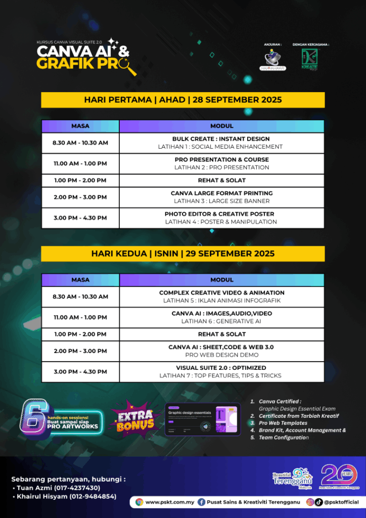 🎨 KURSUS CANVA AI & GRAFIK PRO 2.0 kini kembali dengan teknologi lebih canggih dan kreatif! 🚀